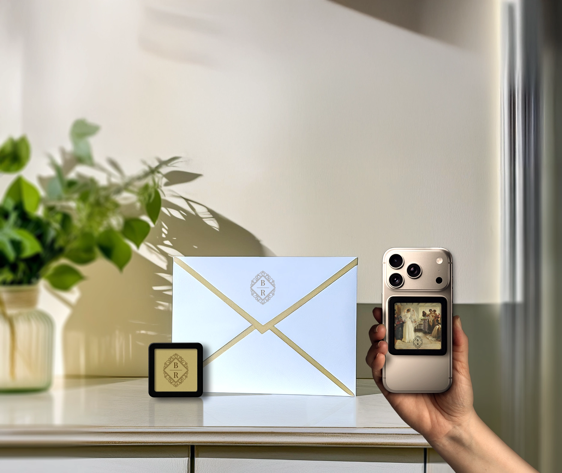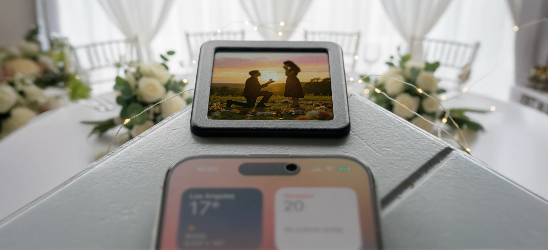 The solution: A magnetic smart photo card that attaches to phones, lives in plain sight, and opens wedding details instantly.